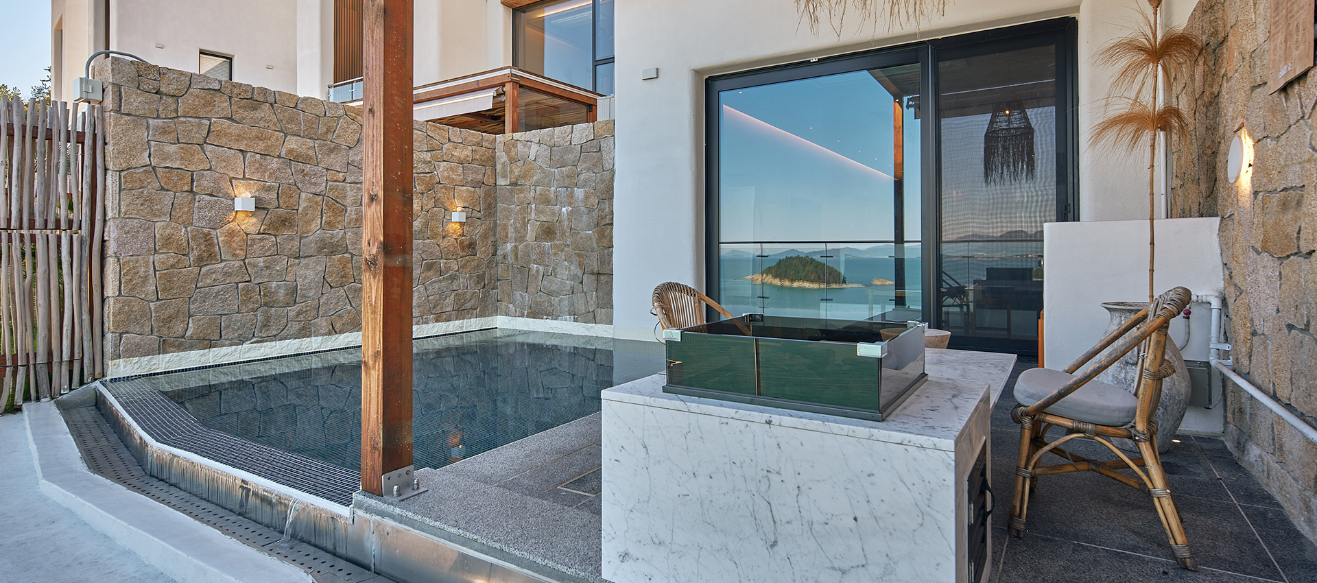 해당 객실은 3인 투숙 객실으로 그리스 산토리니의 영감을 받은 인테리어와