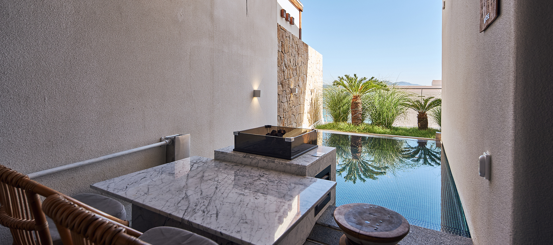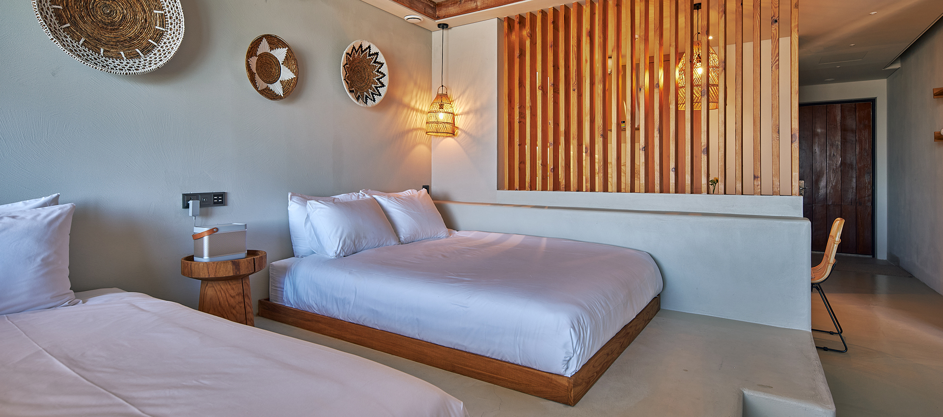해당 객실은 3인 투숙 객실으로 그리스 산토리니의 영감을 받은 인테리어와