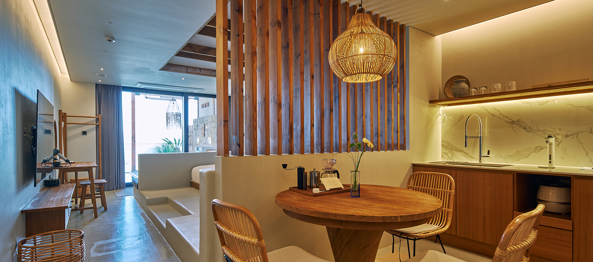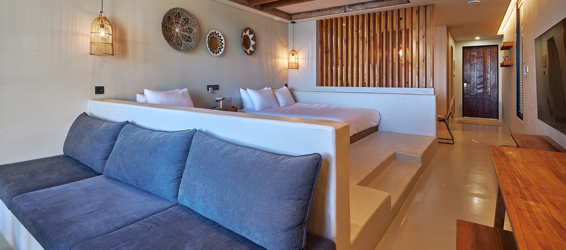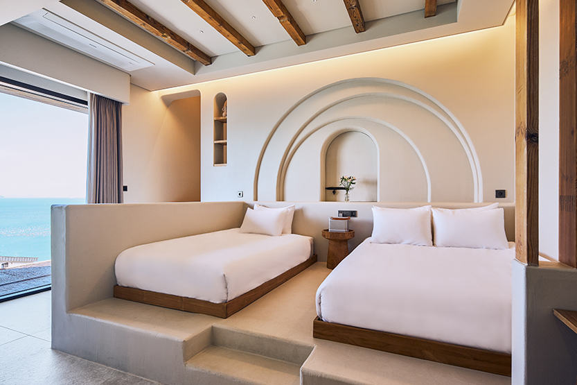 해당 객실은 3인 투숙 객실으로 그리스 산토리니의 영감을 받은 인테리어와
