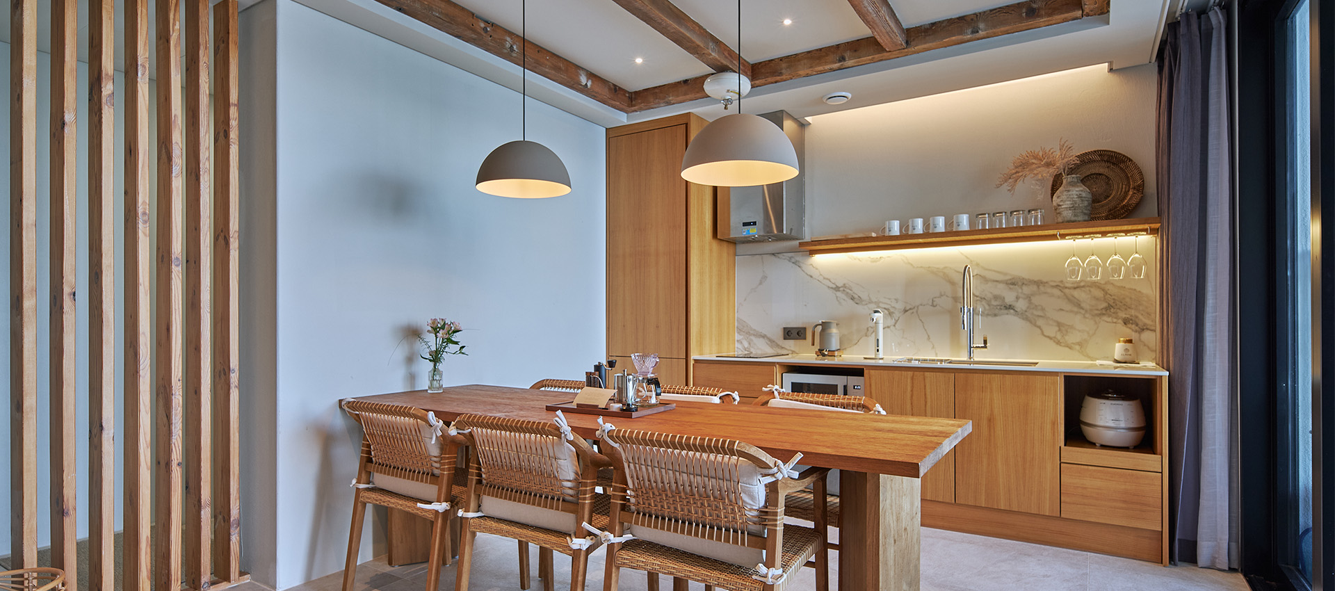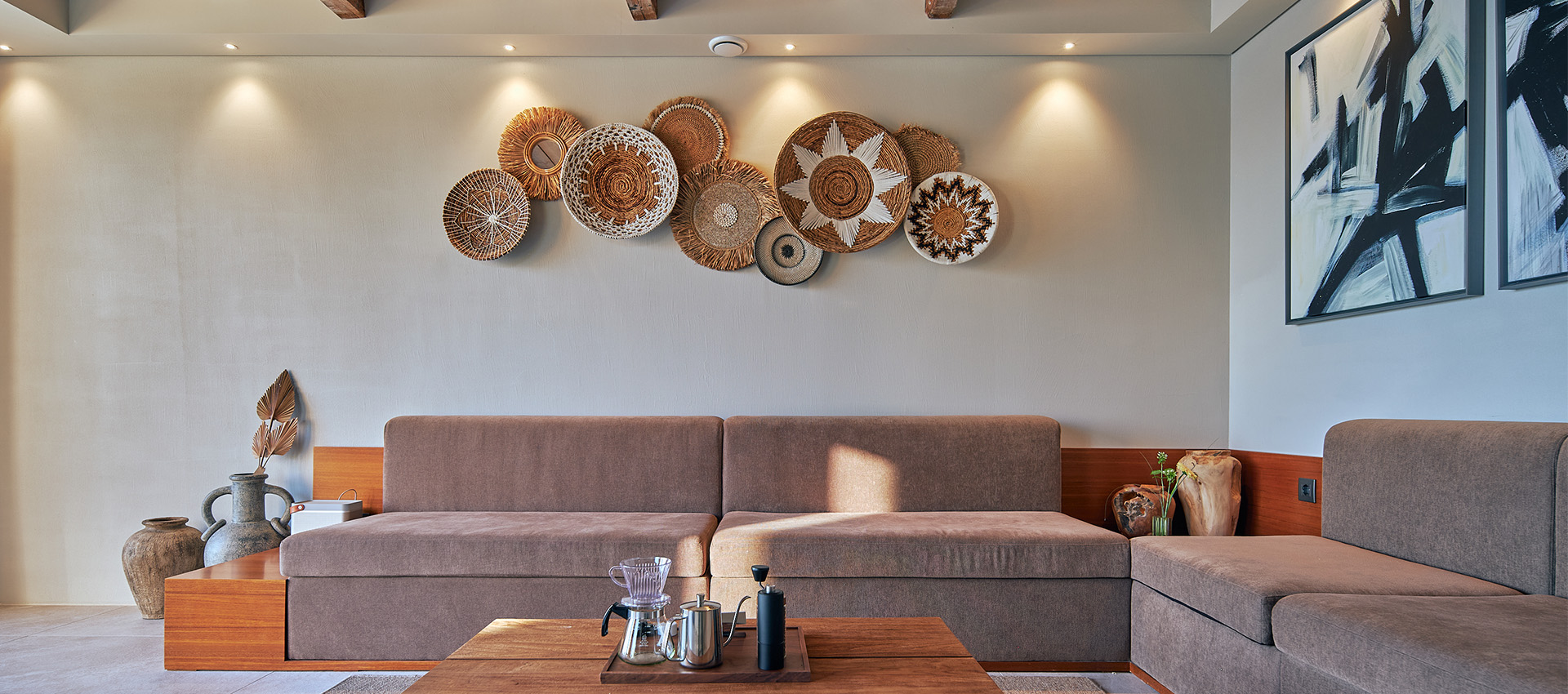 그리스 산토리니의 영감을 받은 인테리어와 자체제작 가구들로 쾌적함과 고급스러운 분위기를 동시에 느끼실 수 있습니다.